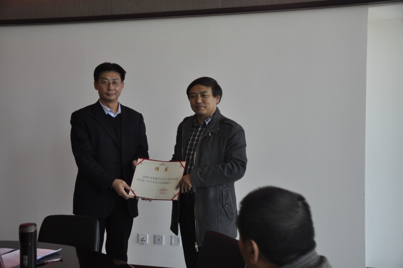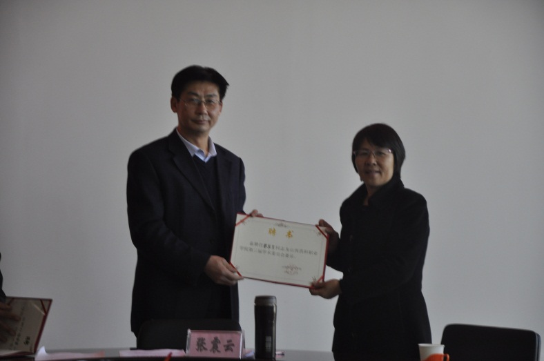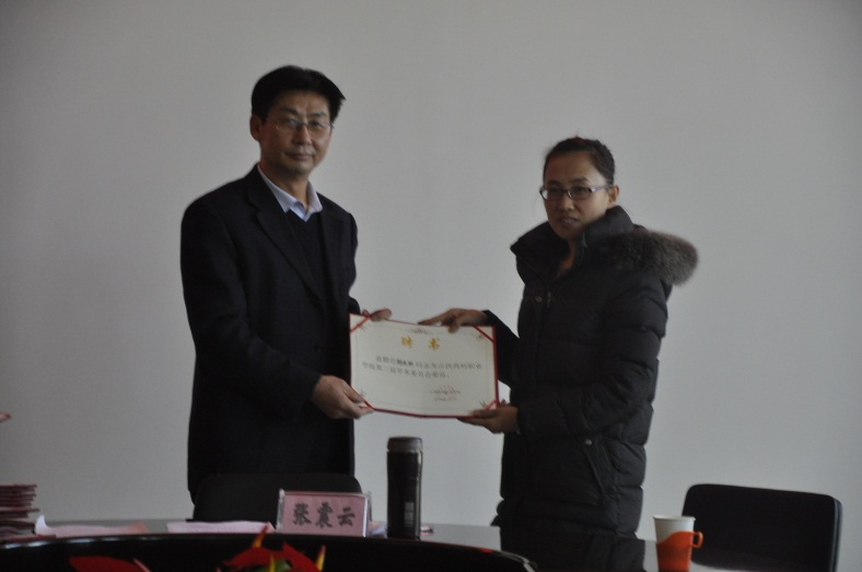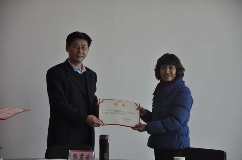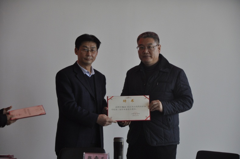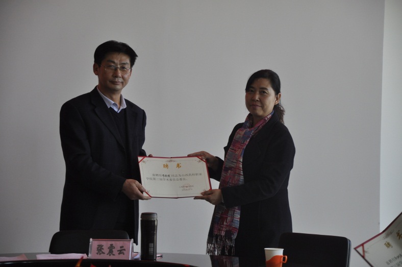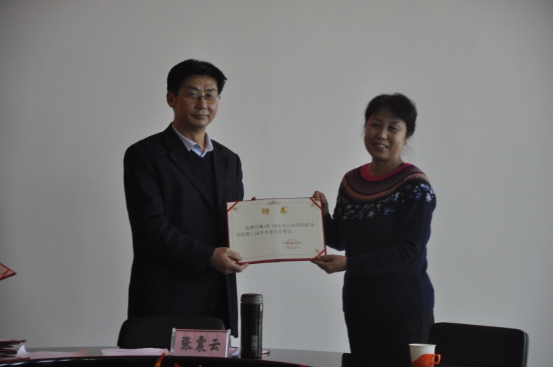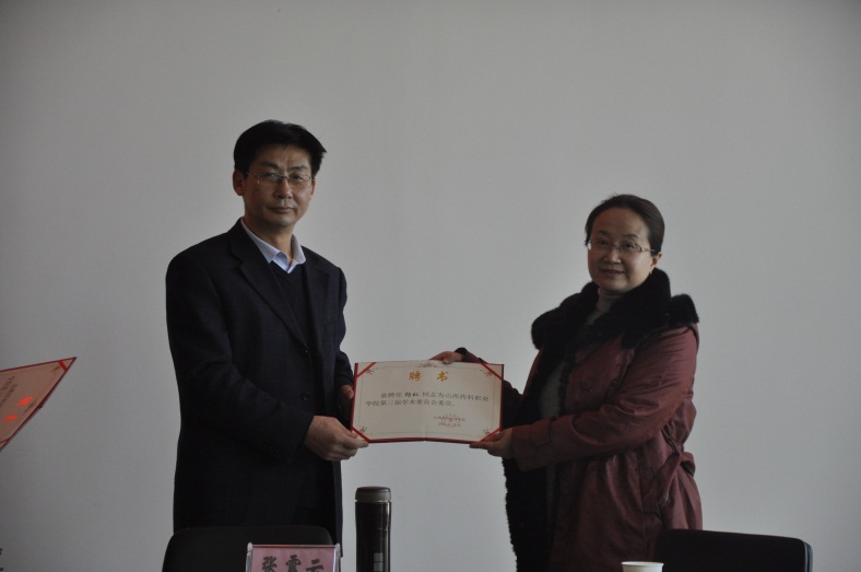 2016年11月23日下午,山西药科职业学院第三届学术委员会在办公楼523会议室召开全体委员会议。有24名学院第三届学术委员会委员和特邀委员参加了会议。会议由学院学术委员会秘书长张虹主持,学院党委副书记、院长张震云发放聘书并作重要讲话。