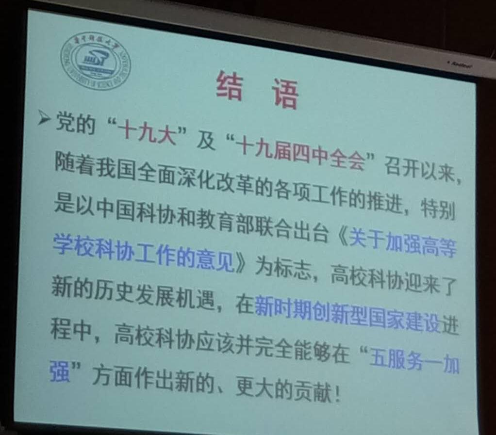 会议总结回顾了山西高校科协的工作经验,肯定了山西高校科协在发挥学术交流、促进科技创新方面的积极作用。山西省科协张秀亲副主席对高校科协建设提出了指导意见,一高校科协要服从党的政治引领,夯实党在科技领域的基础;二高校科协要融入双一流建设中;三高校科协要创新工作方式方法;四要完善机制,发挥桥梁作用,切实提升高校科协组织力。