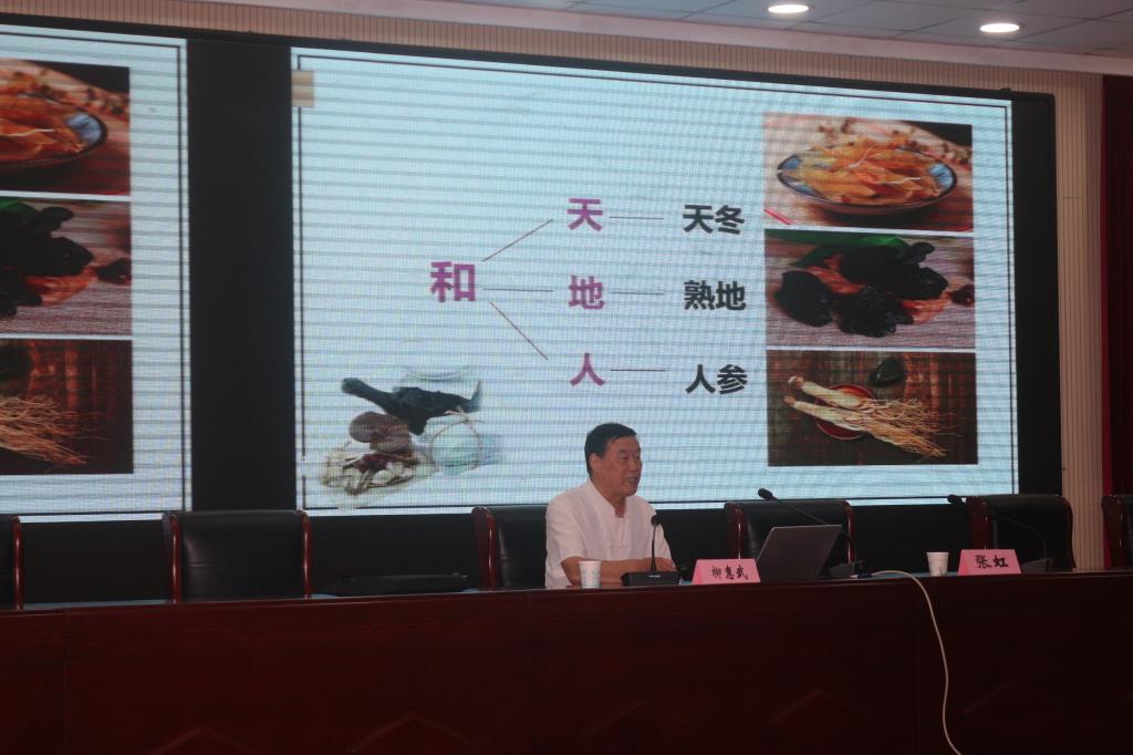 用中药治病是老祖宗留给我们的绝活,古法炮制在药材采集、用料、选材、加工炮制等方面均有独特的要求。柳老师为大家介绍了龟龄集、定坤丹炮制的博大精深。“天大、地大、人亦大”,天地人三才合一,此乃龟龄集的不二组方,天冬、地黄、人参对应三才,鹿茸、海马等对应二十八星宿,这些无一不体现了广集天地之灵气、遍采万物之精华的道法自然。定坤丹则融四君子汤、四物汤、八珍汤、十全大补汤、八珍益母丸、逍遥散、柴胡疏肝散、理中汤等八大名方于一炉,益气养血、活血通络、疏肝理气、补肾健脾,不愧为经典良方。柳老师讲的如痴如醉,师生们听得频频点头,这既是一次传统中医药文化的传承和讲授,也是广大师生增文广益、提升自我的一次修身之旅。