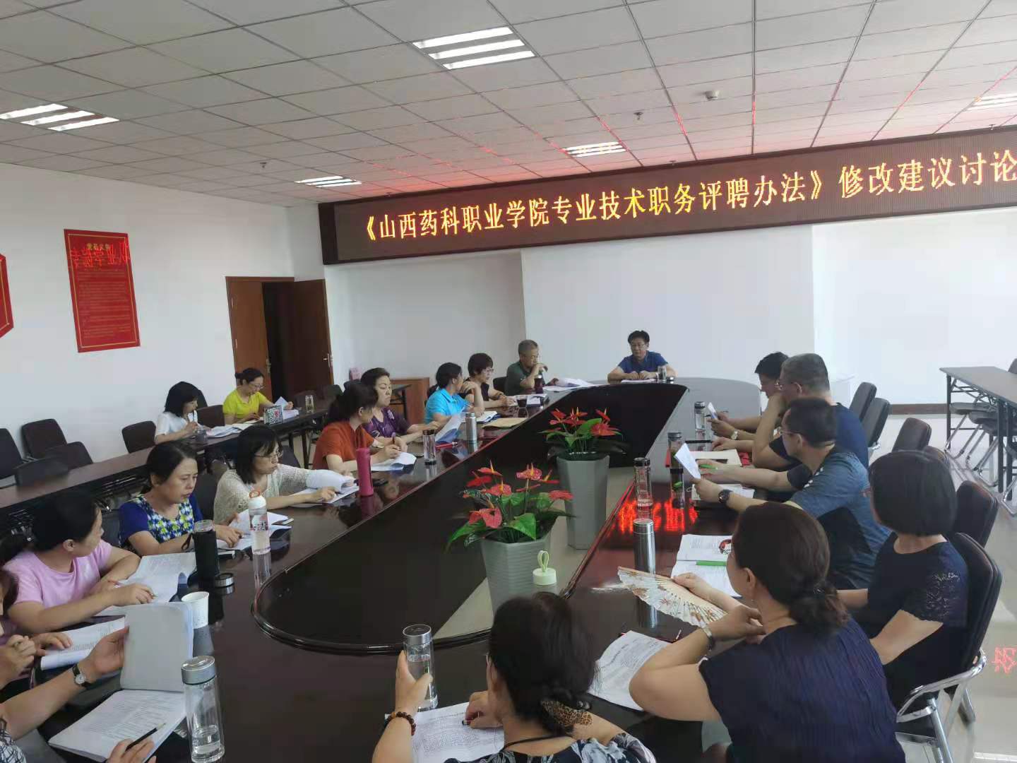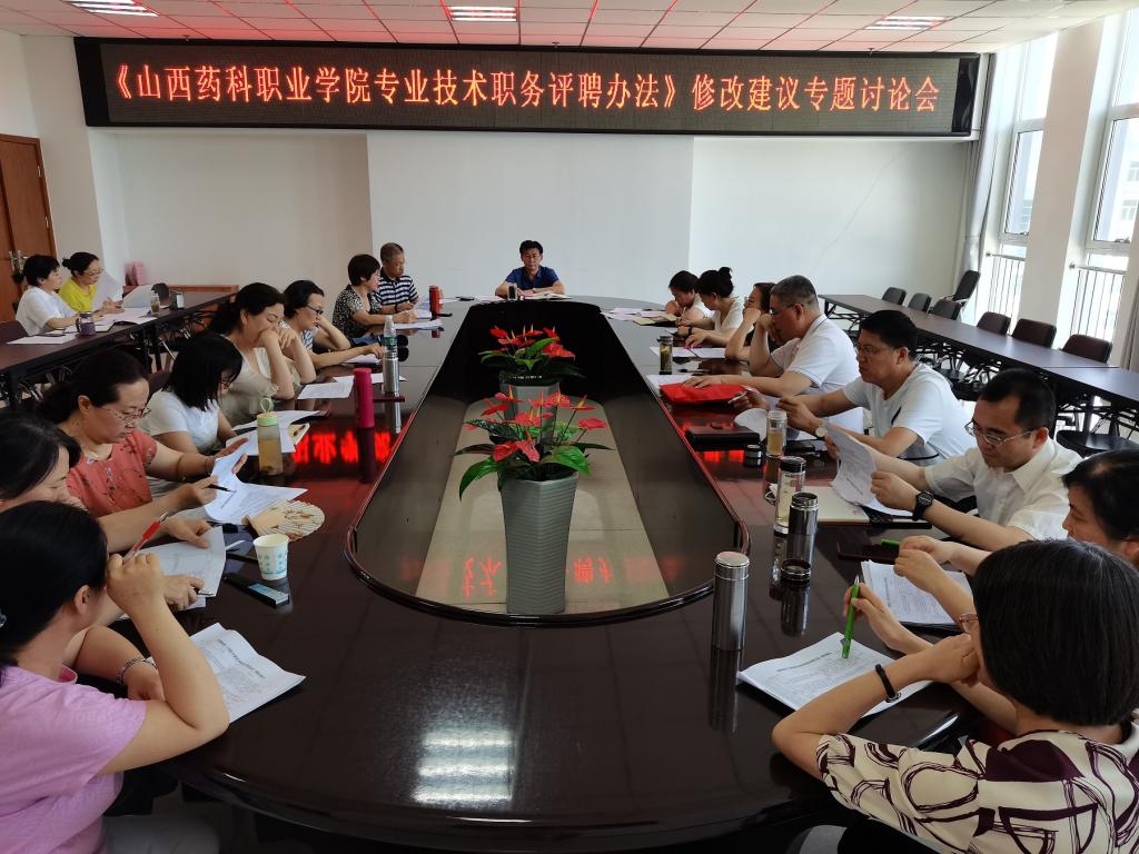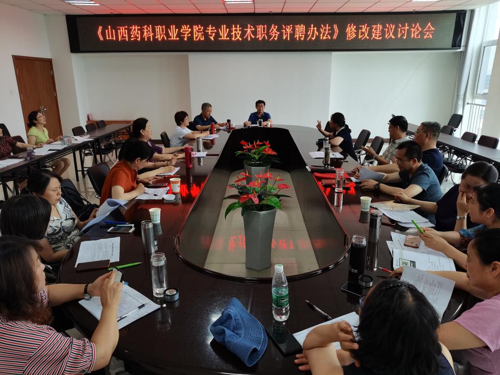 科研中心于6月30日、7月2日、7月5日三次组织院学术委员会在综合楼523会议室集中讨论对《山西药科职业学院专业技术职务评聘办法》的修改建议。
