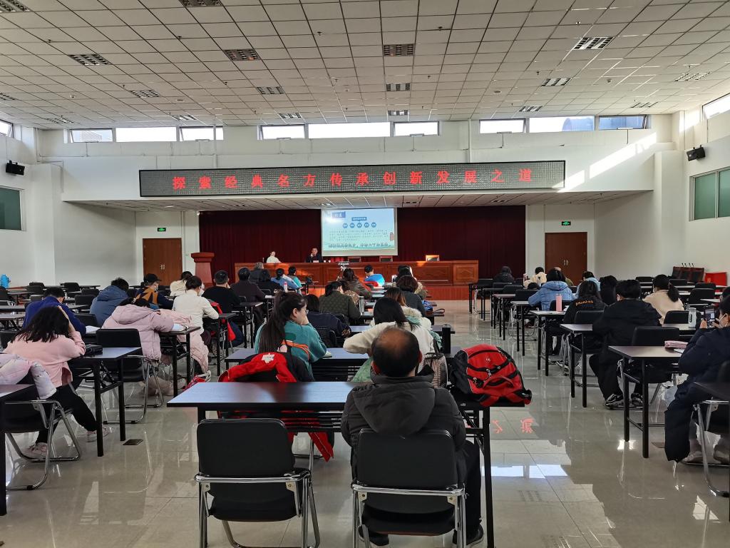 科研中心于11月24日邀请了黄河中医药研究所的吴守恭总工程师来校开展题为“探索经典名方传承创新发展之道”的讲座。吴工从事中药的研究、生产、管理近70年,主持开发了中药制剂量化分析软件,有着丰富的实践工作经验、刻苦的钻研精神,能够把传统的中医药研究和现代中药实验科学研究相结合并以经典名方为切入点精准研究智能化生产。