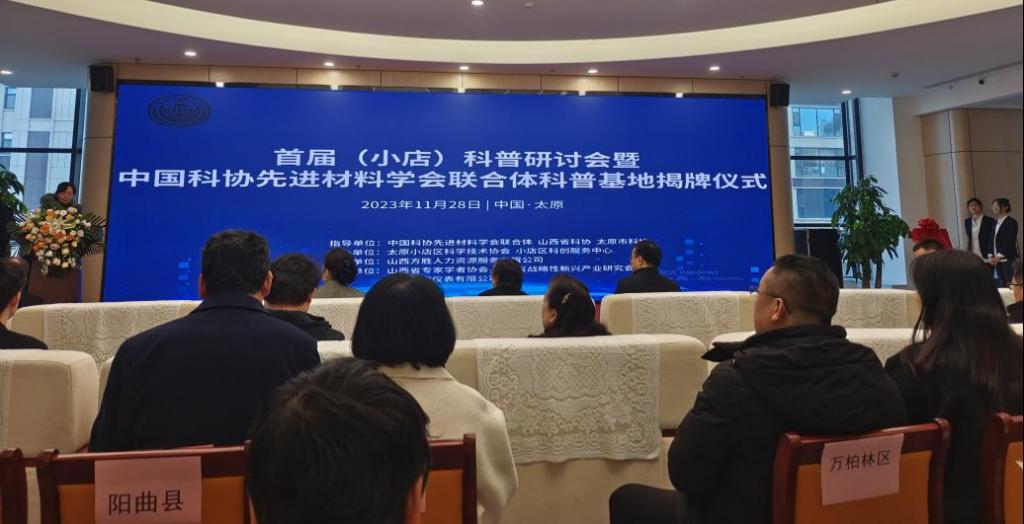 11月28日上午,首届(小店)科普研讨会暨中国科协先进材料学会联合体科普基地揭牌仪式在太原市小店区科创服务中心举行,科研中心派员参加了会议。参会老师表示通过参加此次研讨会详细了解了国家的科普政策,强化了科普责任,提升了科普能力和素质。