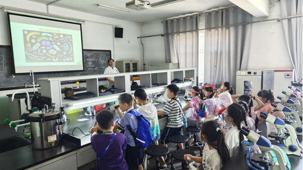 “微生物的世界”环节充满惊叹声。孩子们首次接触显微镜,透过镜头观察微生物的奇妙形态,惊叹于微观世界的神奇,科学探索的热情被瞬间点燃。