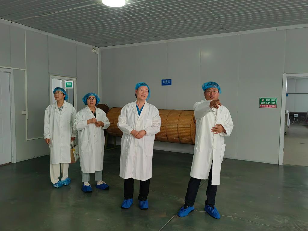 调研首站来到冠山连翘茶标准化生产车间。张怀军介绍,公司创新生产模式,兼顾效率与质量,保证产品批次稳定、品质优良。调研团队认真观察记录,与工作人员交流,了解生产技术和质控措施,为后续研发合作积累经验。