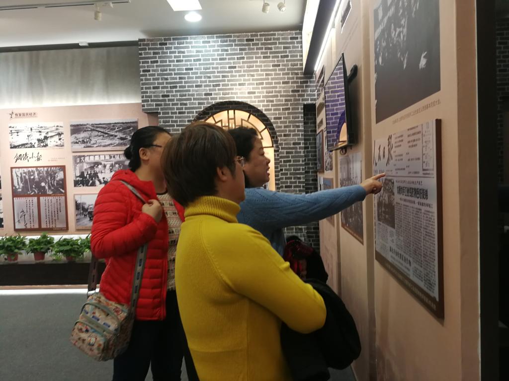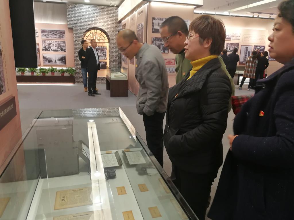 在参观中党员们不时驻足观看,一边仔细端详,一边认真讨论。大家还结合近期习近平总书记最新重要讲话文章,以“微党课”形式进行了学习交流。