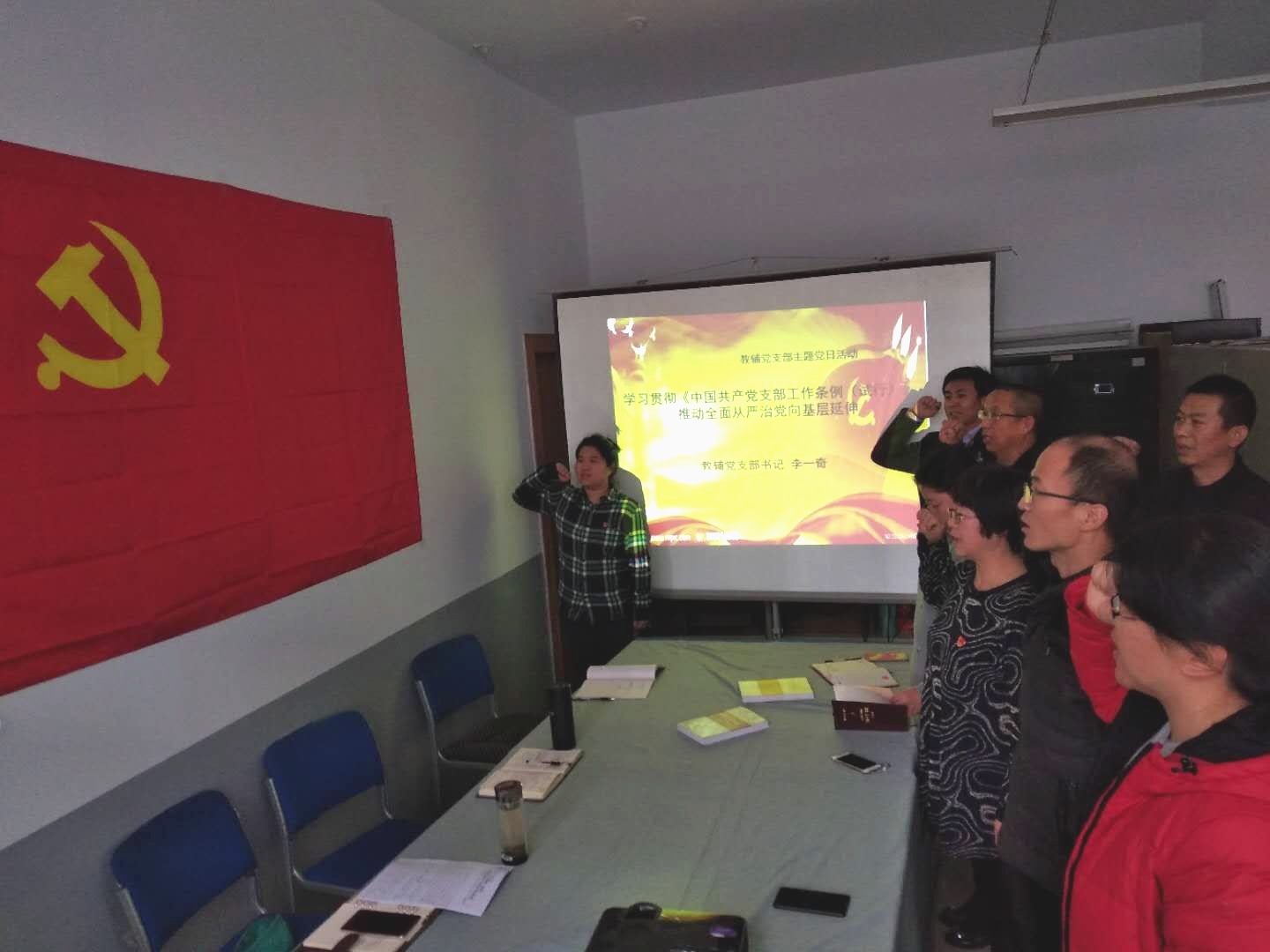 教辅党支部于2018年12月20日下午2:00在电教中心办公室组织全体党员开展学习贯彻《中国共产党支部工作条例(试行)》主题党日活动。活动由教辅党支部书记李一奇同志主持,教辅党支部全体党员参加。