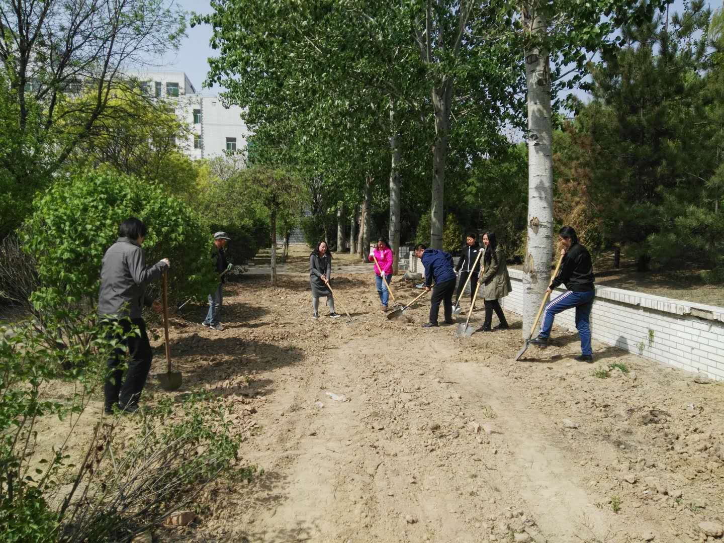 图书馆组织全体人员参加学院组织的“义务植树、美化校园环境”活动。