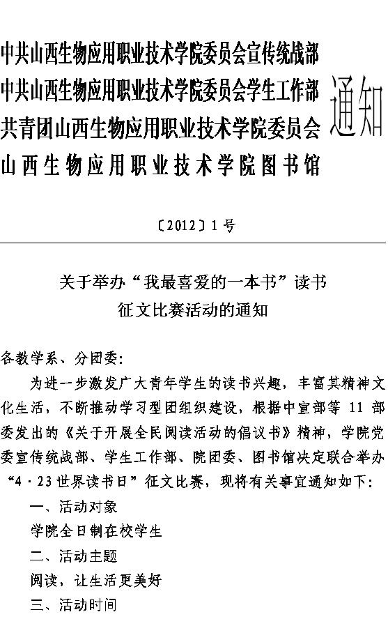 关于举办“我最喜爱的一本书”读书征文比赛活动的通知