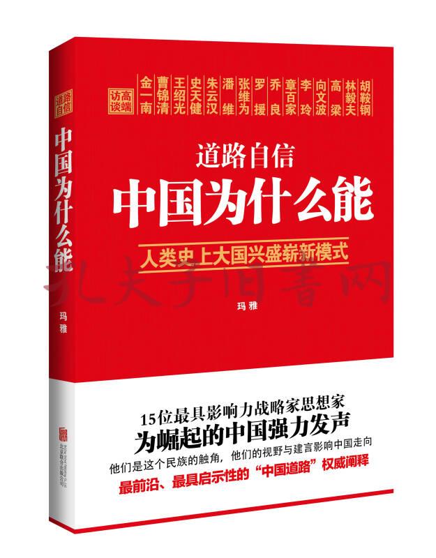 《道路自信:中国为什么能》是2013年北京联合出版公司出版的图书,作者是玛雅 著。这是一部中国趋势形势正能量分析的书稿,是一部客观、提气的作品。 15位中国当代最有影响力的战略思想家,他们从各自的视角、专业对“中国道路”进行了分析解读,总结了共和国60多年的发展道路和发展经验,分析中国在今天世界政治经济中的地位以及面对的机遇和挑战,展望人类未来的发展方向和中国将为世界所作贡献。从事实和理论层面阐述中国道路自信、理论自信、制度自信的依据所在。中国模式能否经受住历史的考验?中华民族的复兴之梦能否实现?如何完善中国模式,建立“后西方话语时代”的中国话语体系?这成为中国严肃思想者们的理想与追求。书中思想具有国家战略意义和政策参考价值,也有助于启迪心智,培养家国情怀。本书获得“2014中国好书”荣誉。