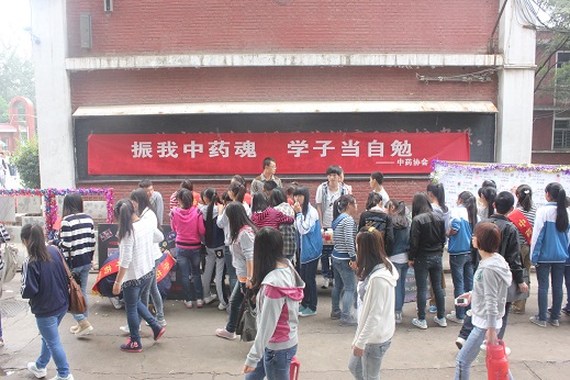 2013年9月16日,我院西教学楼前热闹非凡,中药协会、交谊舞协会、武术协会、青年志愿者协会、礼仪协会、英语协会、数学建模协会等社团同时展开新学期纳新活动。不少大一新生来到活动现场,寻找自己感兴趣的学生社团,使得纳新现场呈现出一片繁荣热闹的场面。