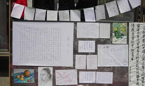 为丰富校园文化生活,陶冶学生情操,展现我院学生积极向上的精神风貌, 3月28日下午在西教学楼前举办了“浓墨书香绘春画”作品展。