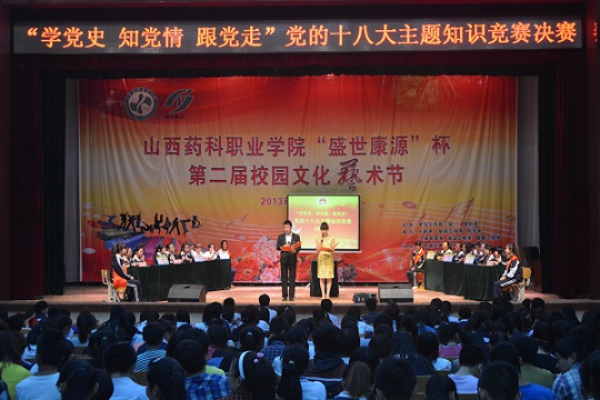 为深入贯彻落实党的十八大精神,继承和发扬党的光荣传统和优良作风,引导广大团员青年坚定跟党走中国特色社会主义道路的信念。2013年5月16日晚,由制药工程系承办的学院“盛世康源”杯第二届校园文化艺术节“学党史知党情跟党走”党的十八大主题知识竞赛决赛在学院大礼堂隆重举行。学院宣传统战部部长原超、学生处处长彭志强、思政部主任李英平、院团委副书记付平、思政部办公室主任葛蕾以及院团委、部分系分团委老师与近千余名学生共同观看比赛。
