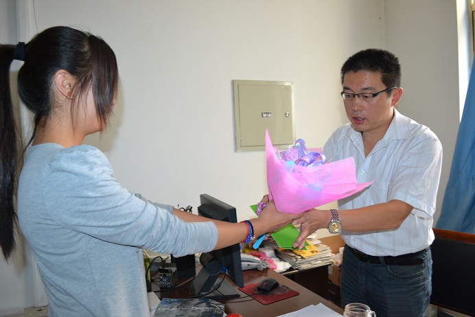 同学们通过校园电波、宣传板、短信将全系学生最诚挚的祝福送给每个老师;系团学干部还向老师们送出了亲手制作的贺卡、花束,用绿色盆栽装点教师办公室;同时,系分团委还号召各班在教师节当天为上课的老师送上一杯水,表达感谢之情。