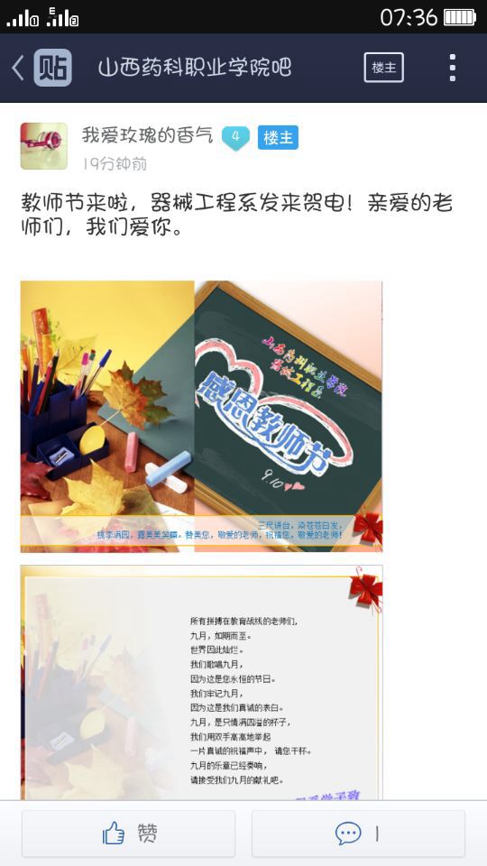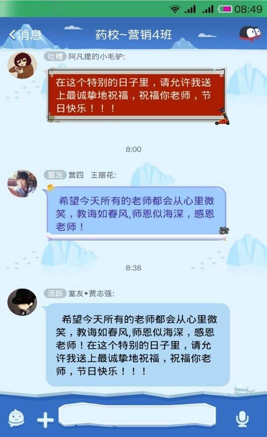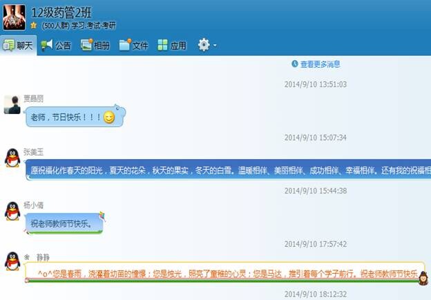 “您引导我们推开知识大门,您带领我们走上阳关大道,您教育我们铭记诚实信条,您呵护我们绽放人生的花苞。教师节到了,感谢有您,祝您快乐!”这是同学们用短信带给教师们的礼物。