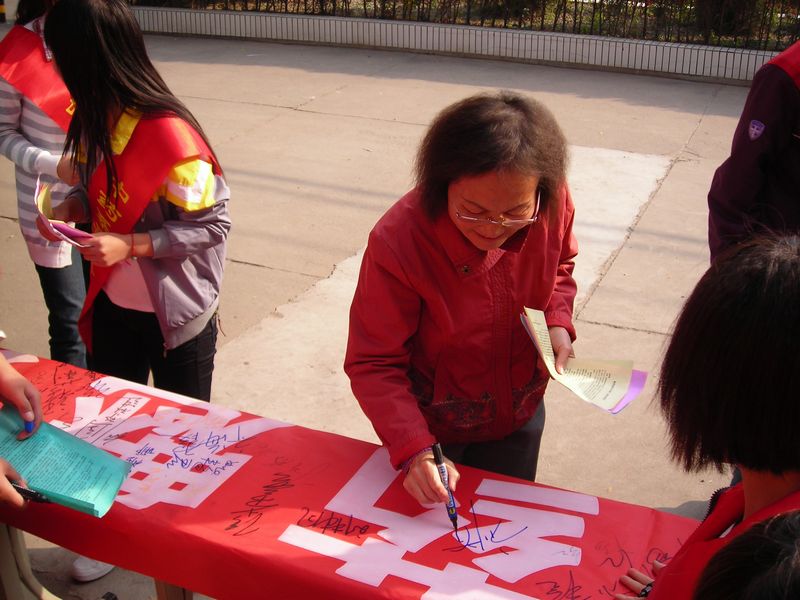 活动主要以宣传低碳生活为主并组织了志愿者签字以表决心。低碳不仅可以减缓大气变暖和南极冰川的融化,还关系到我们每个人的日常生活。选择低能量、低消耗、低开支的“低碳生活”是每个公民应尽的责任。此次活动引起了众多老师与同学们的关注,增强了大家对环境保护的强烈意识,大家热情签字,现场攒动。