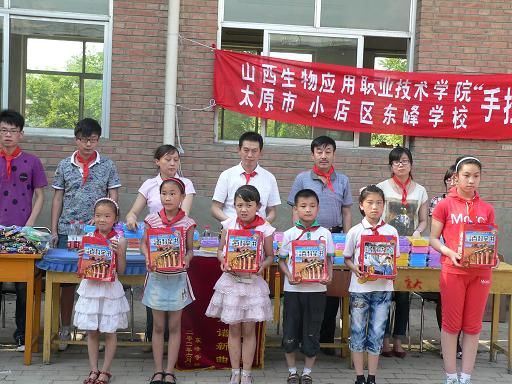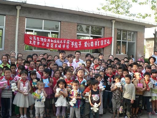 六月阳光灿烂,六月百花盛开,六月更是每一位小朋友的节日。为了加强我院与周边农村的和谐共建,“六一”期间,按照院领导安排,院团委副书记苏珍枝、宣传统战部部长助理裴建平、药品经济贸易系党总支副书记郁敏以及中药系和生物系辅导员老师一行13人赴太原市小店区东峰村,同东峰小学举行了“手拉手,爱心助学”联谊活动,为这里的孩子送上了精彩的文艺节目和真诚的节日问候,并捐赠价值近四千元的学习、运动用品,受到了东峰小学一百余名师生的热烈欢迎。