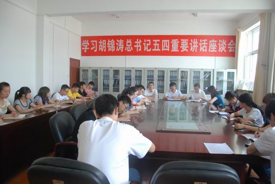 5月10日,院团委组织召开学习胡锦涛总书记五四重要讲话座谈会,院团委副书记苏珍枝、付平出席座谈会,团委办公室主任,各系分团委书记、副书记和院系主要团学干部参加座谈。座谈会由院团委书记原超同志主持。