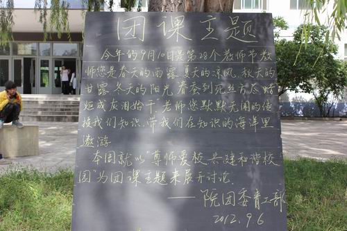 为庆祝第28个教师节,院团委开展了以“感念师恩,携手共进”为主题的庆祝活动。