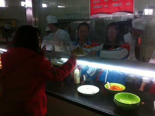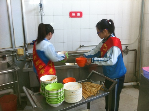 活动伊始,正是学生就餐的高峰期,同学们身着校服,佩戴志愿者绶带,积极踊跃投入志愿服务。同学们分为三个小组,一组帮忙拿筷子,为打好饭的同学节省时间,一组协助部分打饭窗口为同学们打好饭菜并维持领饭秩序,另一组则帮助清洁阿姨收拾餐具。他们用微笑感动身边人,用一举一动映衬雷锋的影子,用默默无闻的志愿服务演绎时代新雷锋。他们是不怕脏、不怕苦的“雷锋”,是助人为乐的“雷锋”。