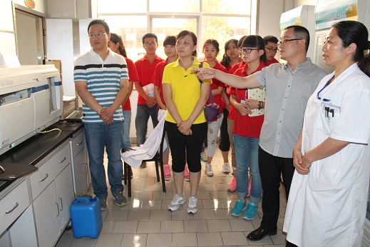 在检验中心,丰主任为我们介绍了乳制品检验的各项流程,讲解了有关检测仪器设备的使用操作规范,使同学们真正感受到了乳制品感官、理化以及微生物指标检测的检测对检测人才的专业素养要求。在参观过程中,丰主任还对我院的学生给予了高度评价,她说,药院学生综合素质高,适应岗位能力强,勤奋好学,并欢迎药院毕业生加入古城乳业。