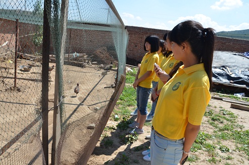 上午,社会实践团来到了神池县太平庄乡参观山人特种养殖基地。刚一到达,饲养员就热情的为我们讲解了孔雀、野鸡、火鸡等动物的饲养方法及生活习性,令同学们感受到了农牧生活独有的魅力。随后,实践团又来到了东湖乡果蔬种植大棚基地,在这里同学们亲自走进大棚,近距离观察作物及其生长环境,并品尝了新鲜的葡萄和西红柿,这样新奇的体验在大家心中留下了深刻的印象。下午,实践团在神池县广场上开展志愿服务活动,为百姓普及日常安全用药知识,解答用药问题,用自身所学去服务广大人民群众。