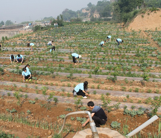 6月21日,我院20名志愿者在灵石团县委刘亚副书记的带领下来到马和乡东梧桐村蔬菜种植基地开展暑期社会实践义务除草、摘菜活动,在蔬菜基地体验农耕生活。