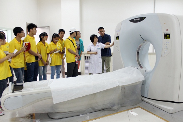 在参观过程中,队员们掌握了中药饮片和西药的摆放和储存规范,观摩医生用针灸为患者治疗,还近距离接触、观察螺旋CT、彩色超声多普勒诊断仪等大型医疗器械,参观时间虽短,却大大弥补了书本知识的欠缺。