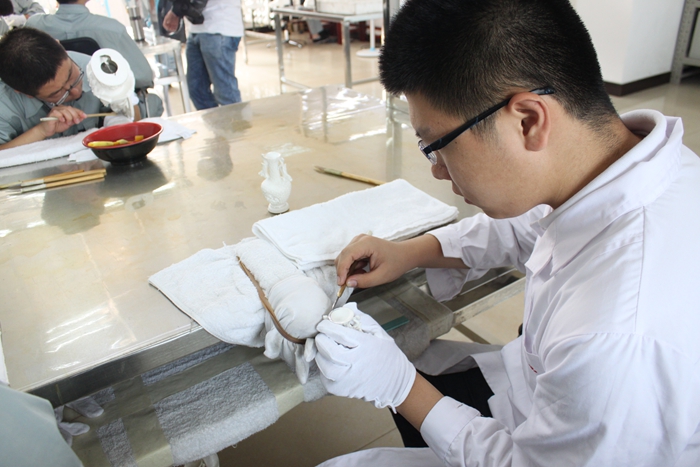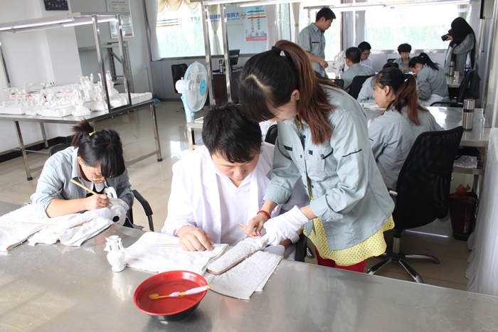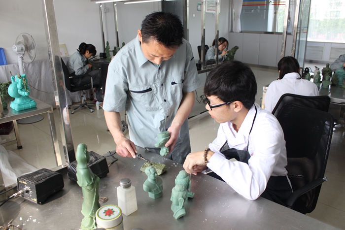 在新闻中心跟岗工作的同学们在师傅的带领下学习了新闻图片的拍摄要领、新闻采编的注意事项以及在计算机上进行新闻排版的实用技能,同时感受到了每一篇好的新闻、每一张好的新闻图片都来之不易;在化验中心跟岗的同学们在师傅的讲解下对矿石有效成分含量的测定有了深入了解,并在师傅的指导下亲自动手进行了测量和分析,通过实践,大家进一步巩固了学校学习的化学分析检测的原理和方法;在宗银公司生产车间跟岗的同学又分为四组分别在雕刻车间、修蜡车间、打磨车间、包装车间进行了学习,每个岗位的师傅都认真仔细的进行了技术讲解,并且让学生亲自上岗,手把手进行技术传授。