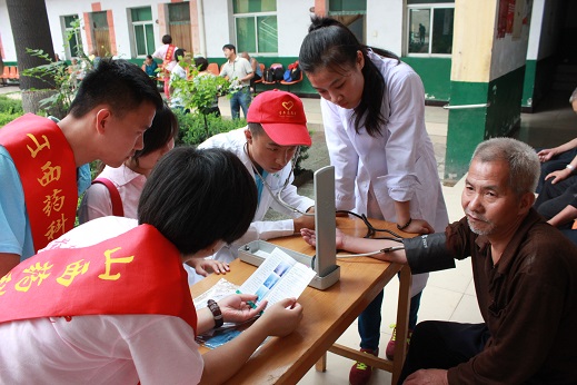临猗县中心敬老院,现有老人40人,其中最年长的一位老人,今年已86岁高龄,看到同学们的到来,非常亲切。实践队员们询问过老人们的身体情况后与老人们聊天,拉起家常,询问了老人们生活上的困难、子女在外地的情况等,了解了他们的精神状态,有针对性的进行义务量血压、讲解夏季饮食安全常识,进行心理咨询和心理疏导,使其摆脱孤独寂寞,保持身心健康。随后,同学们又带来了精彩的节目,同老人们一起欢歌笑语,共叙情谊。老人们也都表示,感谢党和国家对他们的关爱,希望同学们以后常来看望他们,加强交流,增进感情。