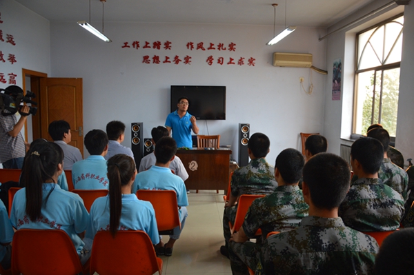 辅导员王丕明老师为官兵讲解了夏季防暑防感冒及如何用药的知识,受到部队官兵的一致好评。社会实践队还与部队官兵一同举办了联谊会,在表演节目中我们增进情感,体现出军民鱼水一家亲的军民关系。联谊会在歌唱祖国的歌声中落下帷幕。联谊会结束后,由李刚副书记为部队送上锦旗,更加增进了军民之间的情感。