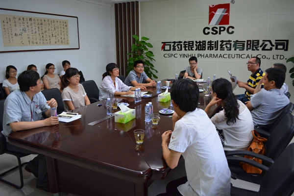 下午,实践团在系党总支书记彭志强、副主任(主持工作)宋金玉的带领下深入大型制药企业——石药银湖制药有限公司一线进行学习考察和专题调研。首先,企业负责人张辉总经理代表企业我们一行来访表示欢迎,他说,药科学院与银湖制药有着较长的合作历史和渊源,目前企业当中不少骨干和中坚力量都是药校生,他们吃苦耐劳、爱岗敬业,为企业发展做出了积极贡献,希望继续加强合作,互利共赢。彭书记、宋主任代表学院感谢石药银湖对我院人才培养工作的支持与帮助,并就专业建设、课程设置、人才需求、“双师”型队伍培养、实践教学基地建设等与企业与会代表进行了广泛深入交流,表示将主动服务企业所需,找准合作契合点,争取作好“合作办学、合作育人、合作就业、合作发展”四篇文章。