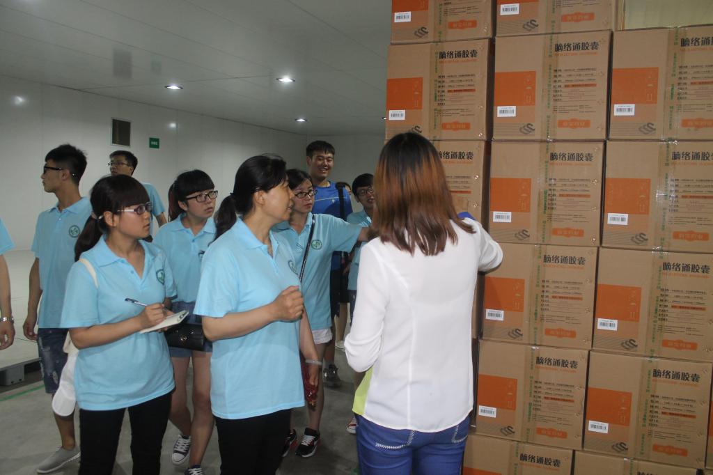 在该企业储运中心林经理的带领下,实践队员们开始了库房的学习与体验。库房分为常温库、阴凉库、中药材库、原辅料库等库房。进入库房后,给大家的第一印象就是药品的整齐摆放和环境的清洁,给人一种舒适的感觉。通过林经理的讲解,大家了解到了一些关于库房管理的基本知识,知道了药品的电子监管码具有“唯一性”,为建立药品质量和安全可追溯体系提供了信息技术平台。同时,实践队员也亲身体验了库房药品的上架、装卸等一系列过程。随后,实践队员参观了该企业自动化立体仓库。