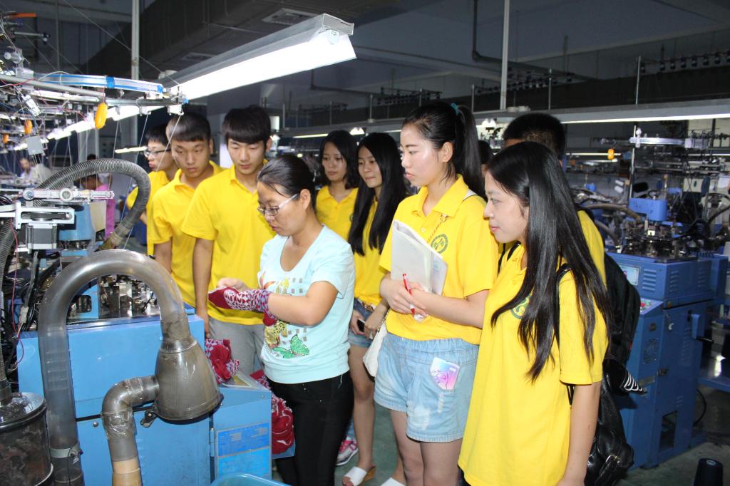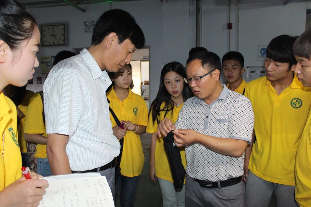 山西聚鑫源针织品有限公司由香港聚能集团投资建设,是珠三角产业转移项目。在厂区经理的带领下,实践队员们参观了工厂车间,先后去了编织机台区、缝头车间、定型车间等,在厂区经理的精心解说和队员们的近距离观察下,了解到公司采用了世界先进的全自动机械生产,整齐划一的生产线处处体现着该公司的制度化与自动化的模式。从染色,加工工艺,到原材料选定都始终跟着“环保”的步伐。其产品更是外销至韩国、日本等国,质量一流。