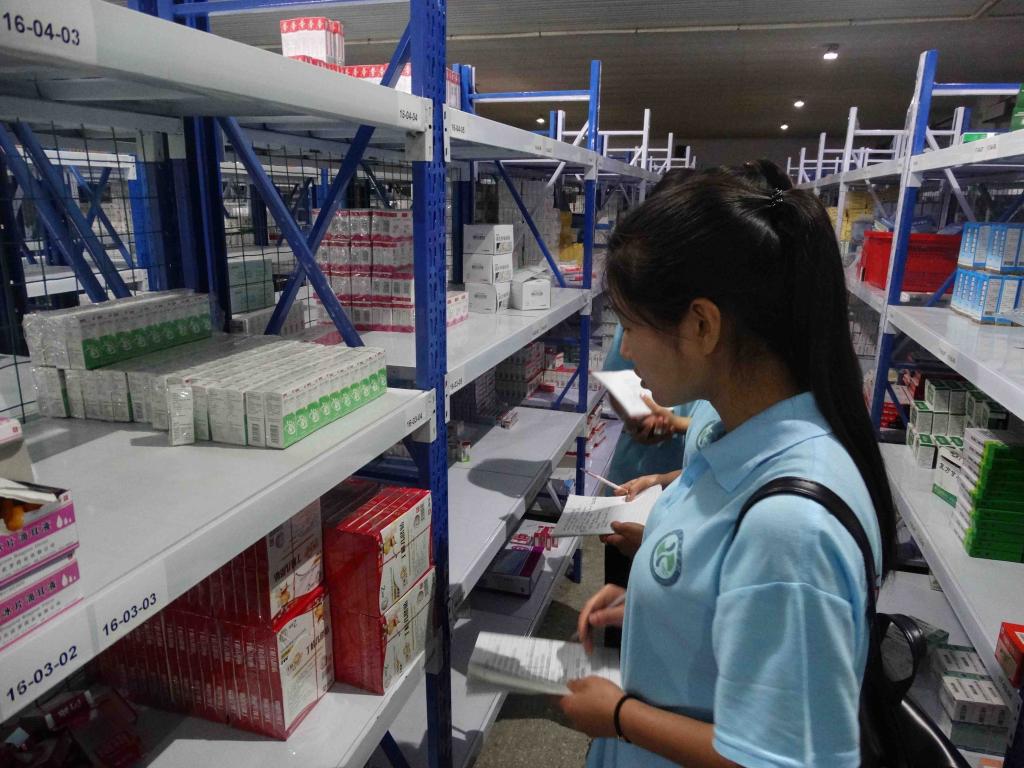首先,实践队员们在临猗县医药药材公司车间吴主任的带领下进行观摩学习,他对药品在药材公司的运作过程进行了详细的讲解。