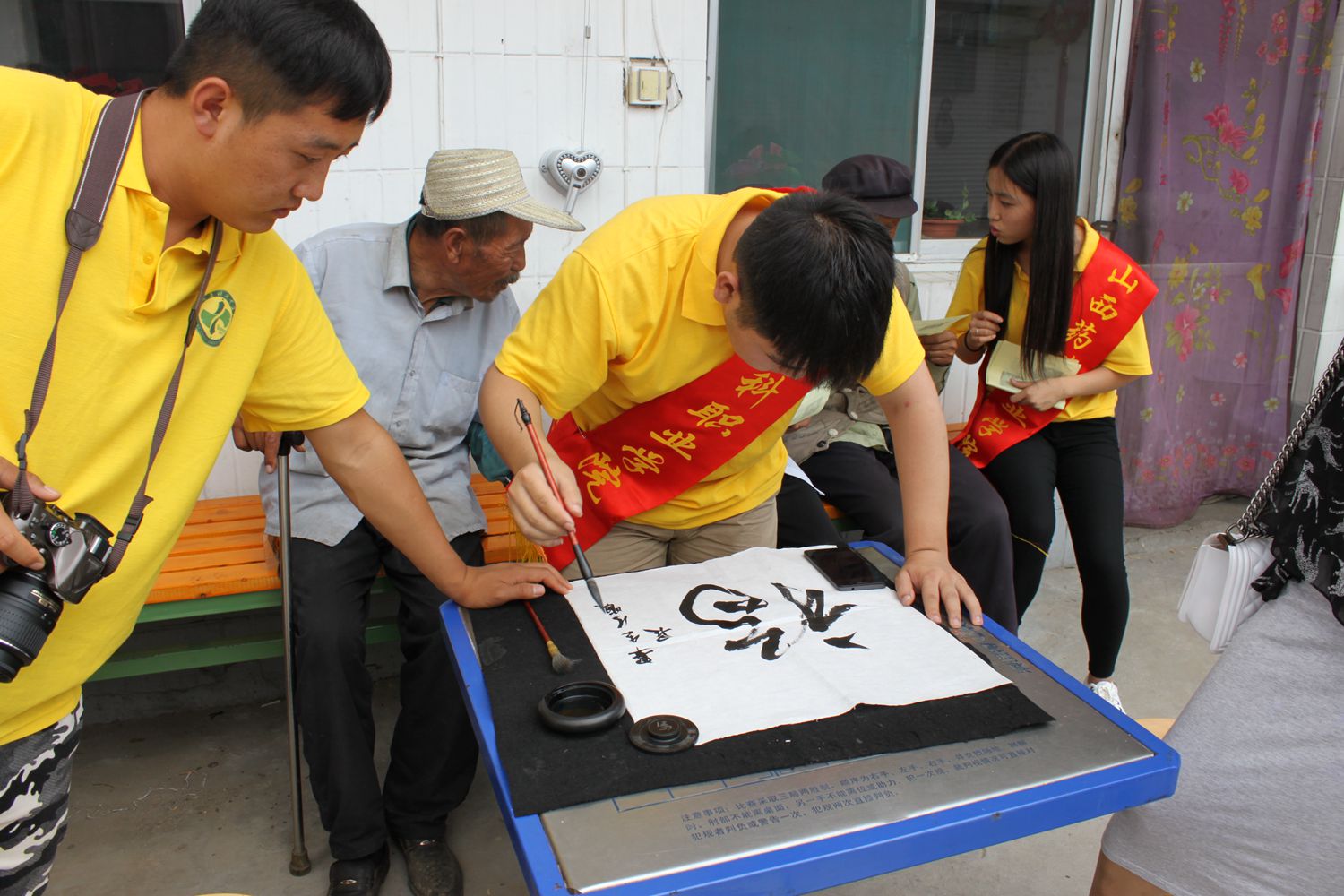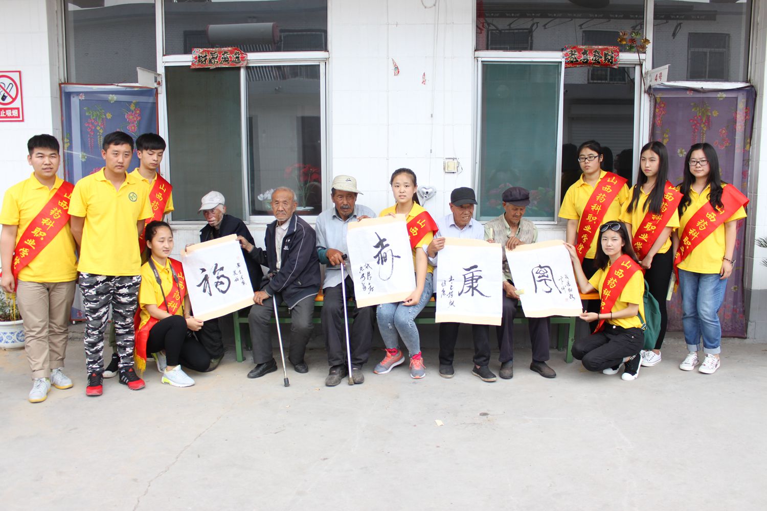 进入光荣院,队员们向张院长了解到,该院共有20名老人,都是男性退伍军人,其中有两位老人曾参加过抗美援朝上甘岭战役。随后,队员们分为两组,一组打扫卫生,一组陪同老人聊天。同时,队员们为老人们讲解了用药安全和夏季养生等知识。最后,由郑培斌同学代表实践团送给光荣院一幅字,并祝福老人幸福长寿,健康安宁。