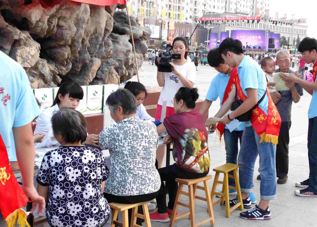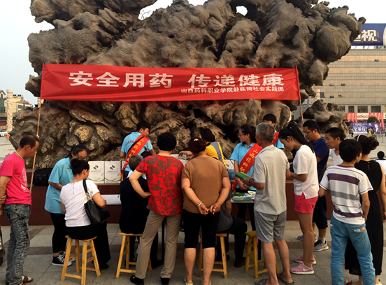 7月7日下午,我院赴临猗社会实践团本着用专业知识服务群众的态度,在临猗县郇阳广场开展了“安全用药,传递健康”医药知识宣传和医疗体检服务,有效地展现了我院的专业特色和药科学子良好的精神风貌,赢得了居民的尊重与好评。