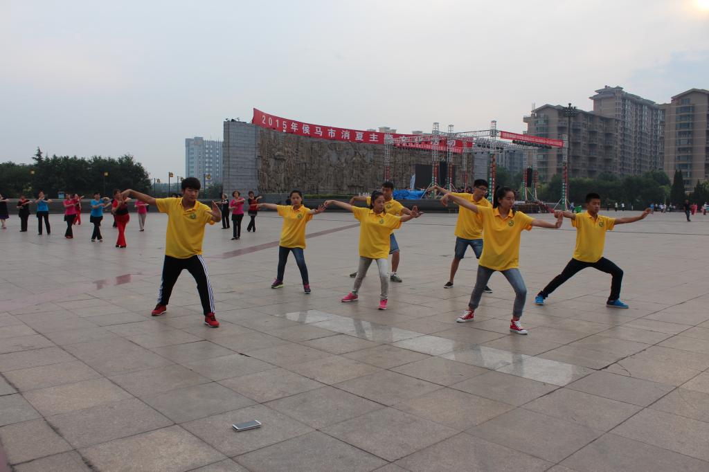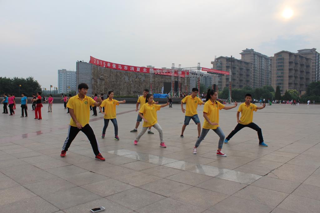 中华武术有着几千年的悠久历史,在其漫长的发展过程中,形成了众多流派,其中太极拳以其特有的健身和搏击作用,倍受国内外人士的喜爱。7月6日清晨,实践队员们来到侯马市广场进行晨练,并同时领略太极拳文化的内涵和魅力。