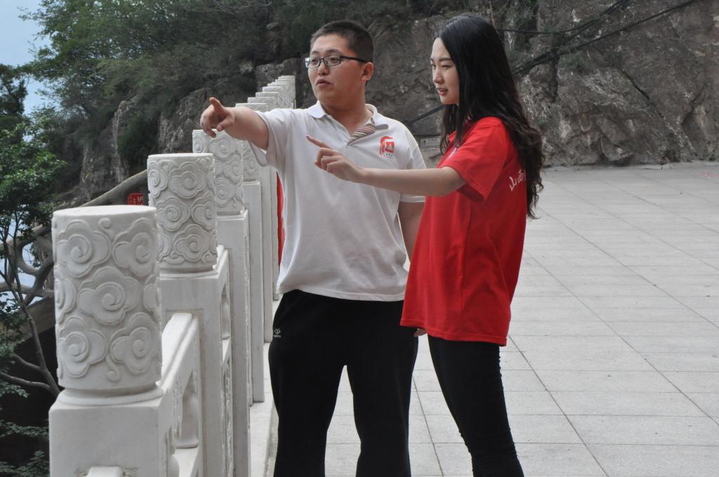 实践队队员们早上八点钟就来到石膏山风景区,背诵解说词,向专业讲解员们学习景点知识以及讲解注意事项。在跟随讲解员亲身体会了一次完整的讲解工作后,队员们纷纷表达了对讲解员们的敬佩。在学习的过程中,队员们“跃跃欲试”,主动和游客们交流,解答他们的疑惑。在参观南天门景点时,队员蔡文倩全面细致地为大家解说了景点的每个角落,游客们纷纷表示赞许。在得知队员们义务做讲解员后,游客李先生说:“期待更多大学生来宣传石膏山风景区。”