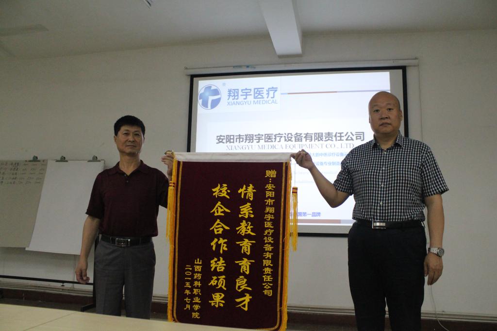 最后,胡尔雅副院长代表学院向翔宇医疗赠送锦旗,希望校企合作能够长长久久。