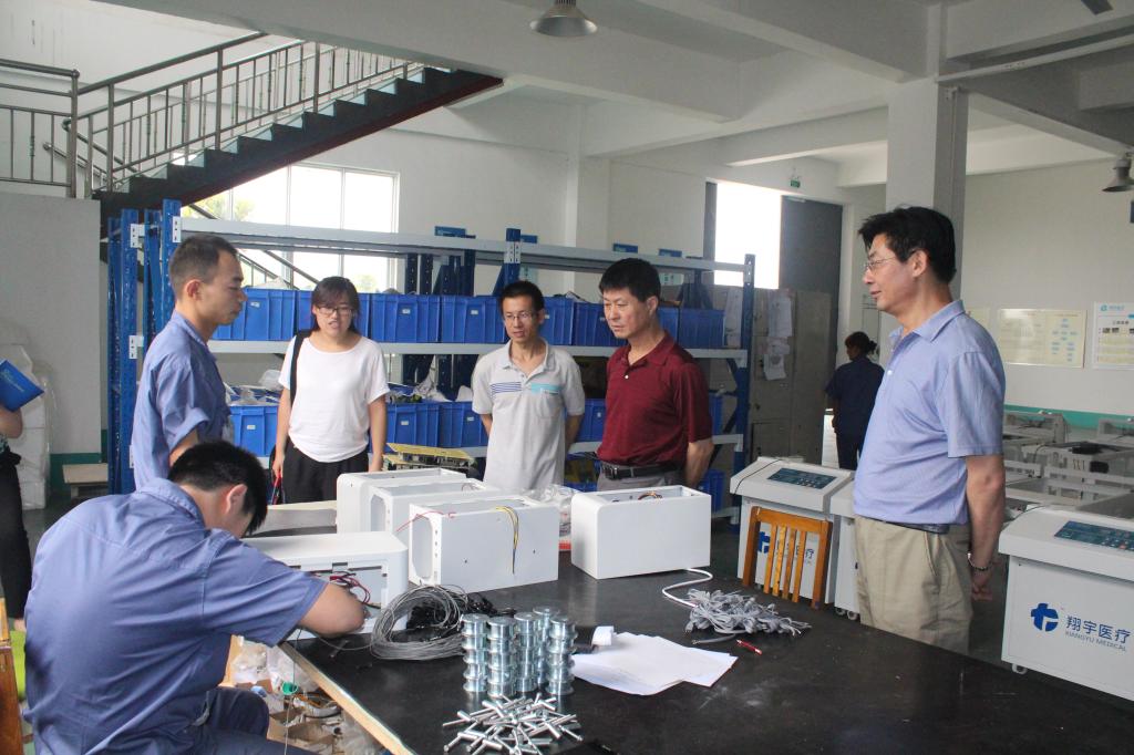 过程中,学院领导在翔宇医疗人力资源部李志峰部长和带队老师的陪同下首先参观了企业展厅,并亲身体验了水床的功效。随后到安装车间看望了正在实践的队员们和大二的实习生,并给予了高度的肯定,鼓励大家要好好学习,将专业知识与职业技能紧密结合,与时俱进,服务社会。