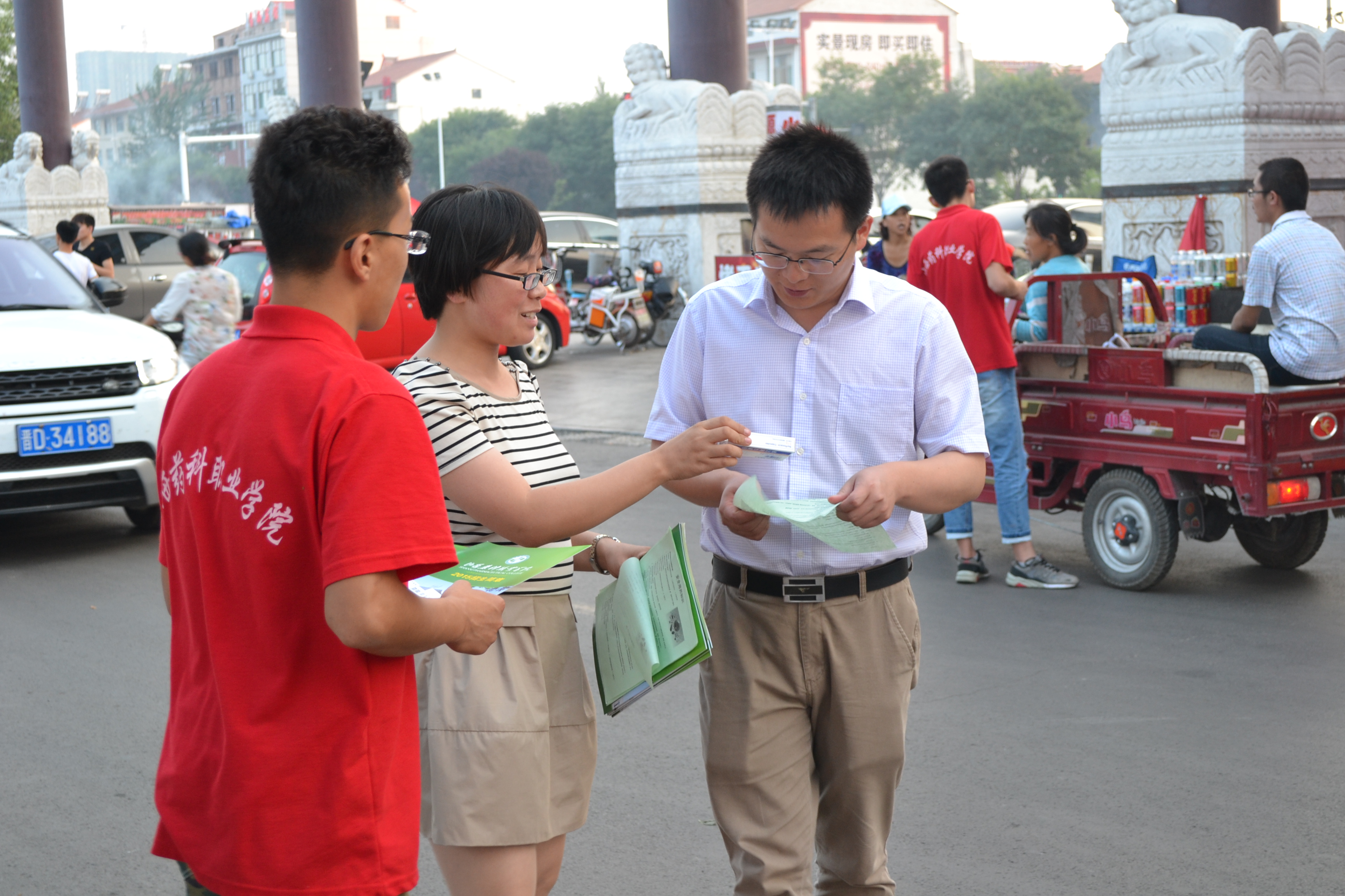 在宣传过程中,实践队员为周围群众讲解健康饮食和安全用药方面的知识,耐心地向群众讲解了日常饮食方面如何搭配食物更营养更健康,夏天吃什么比较好,高血压、糖尿病患者在饮食方面要注意什么等知识,并且为群众分发了一些日常用药。另外,我院的招生宣传工作也顺利开展,队员们现场宣讲及派发宣传资料,在宣传过程中做到“耐心、热心、诚心、细心”,取得了良好的宣传效果。