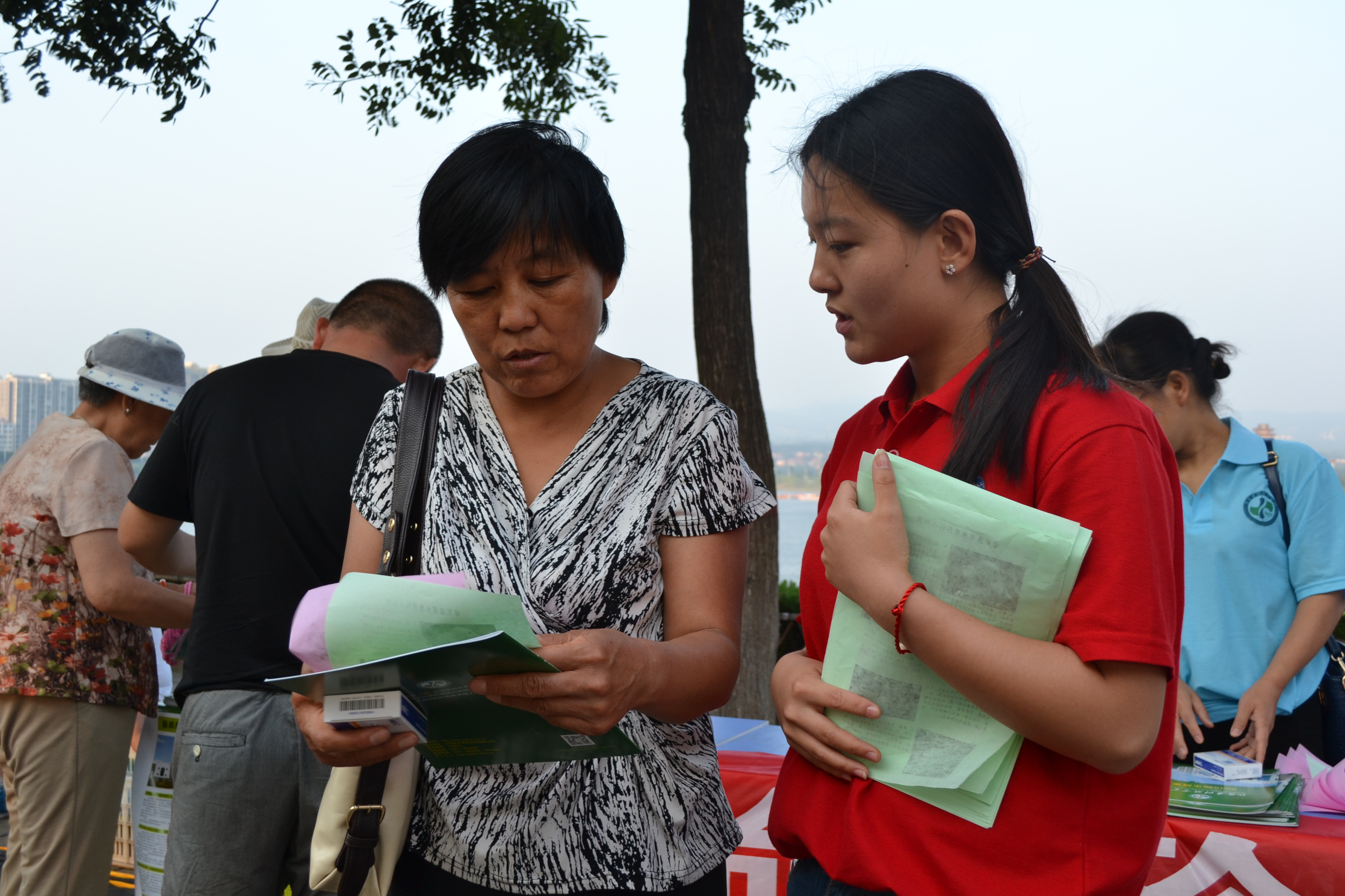 7月8日下午,我院赴襄垣实践队员来到襄垣县东湖公园开展用药知识讲解和招生宣传活动。
