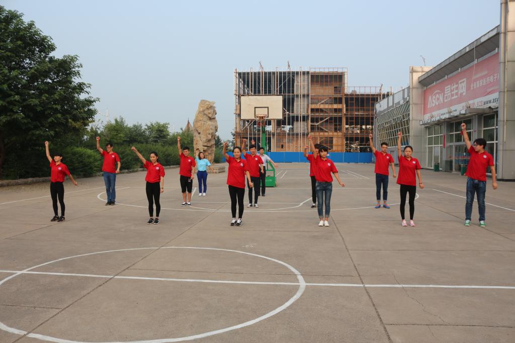 清晨的昂生,万物寂静,掩映在树木之中,清新的空气沁人心脾,一日之计在于晨,运动场上,药学系昂生医药暑期社会实践队员们已经开始了体育锻炼,在程俊峰老师的带领下,大家进行了跑步热身和健身早操锻炼。