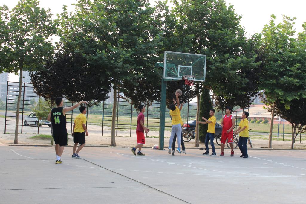 随后,实践团队员们与亿动篮球教练举行了一场别开生面的篮球友谊赛。随着一声哨响,整个球场就充满了紧张的气氛,球员的激情全部淋漓尽致的体现在篮球场上。比赛中,各位队员都全力以赴,积极防守、进攻,显示了他们极佳的心理素质。在场同学也情绪高涨,不时为队员打气、喝彩,气氛热烈。赛场上双方拼抢很激烈,带球、运球、投篮等一系列动作潇洒,引来围观人员一阵阵的喝彩。