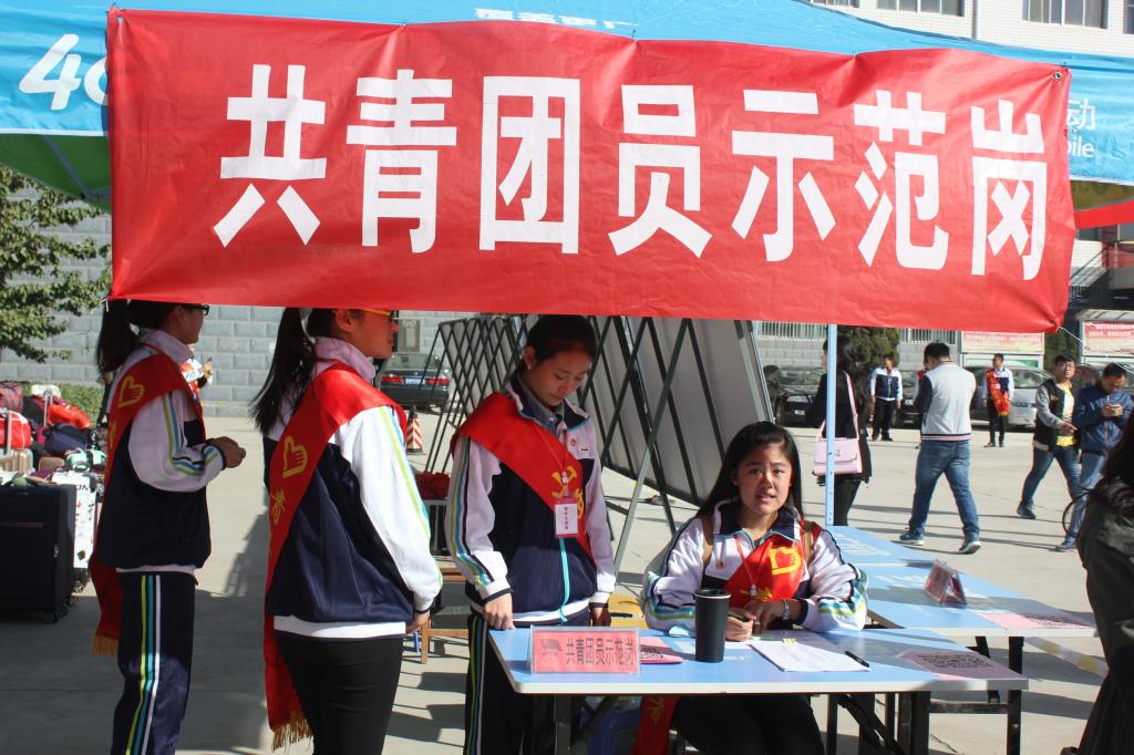 校园一角的团员示范岗成为了迎新工作中一道亮丽的风景线。这里的青年团员志愿者不是把承诺停留在口号上,而是更多地落实到行动当中,一次次凸显了“团员示范岗”的先锋模范带头作用。他们用自己的言行带动人,用自己的工作态度激励人,为其他志愿者树立了榜样、带去了干劲。