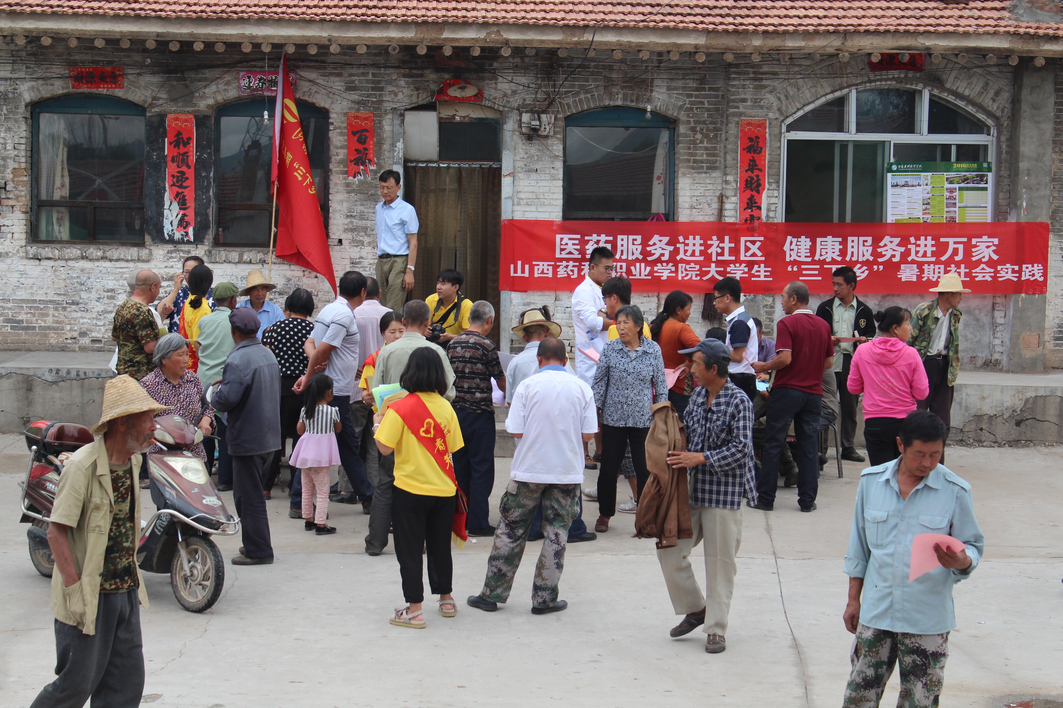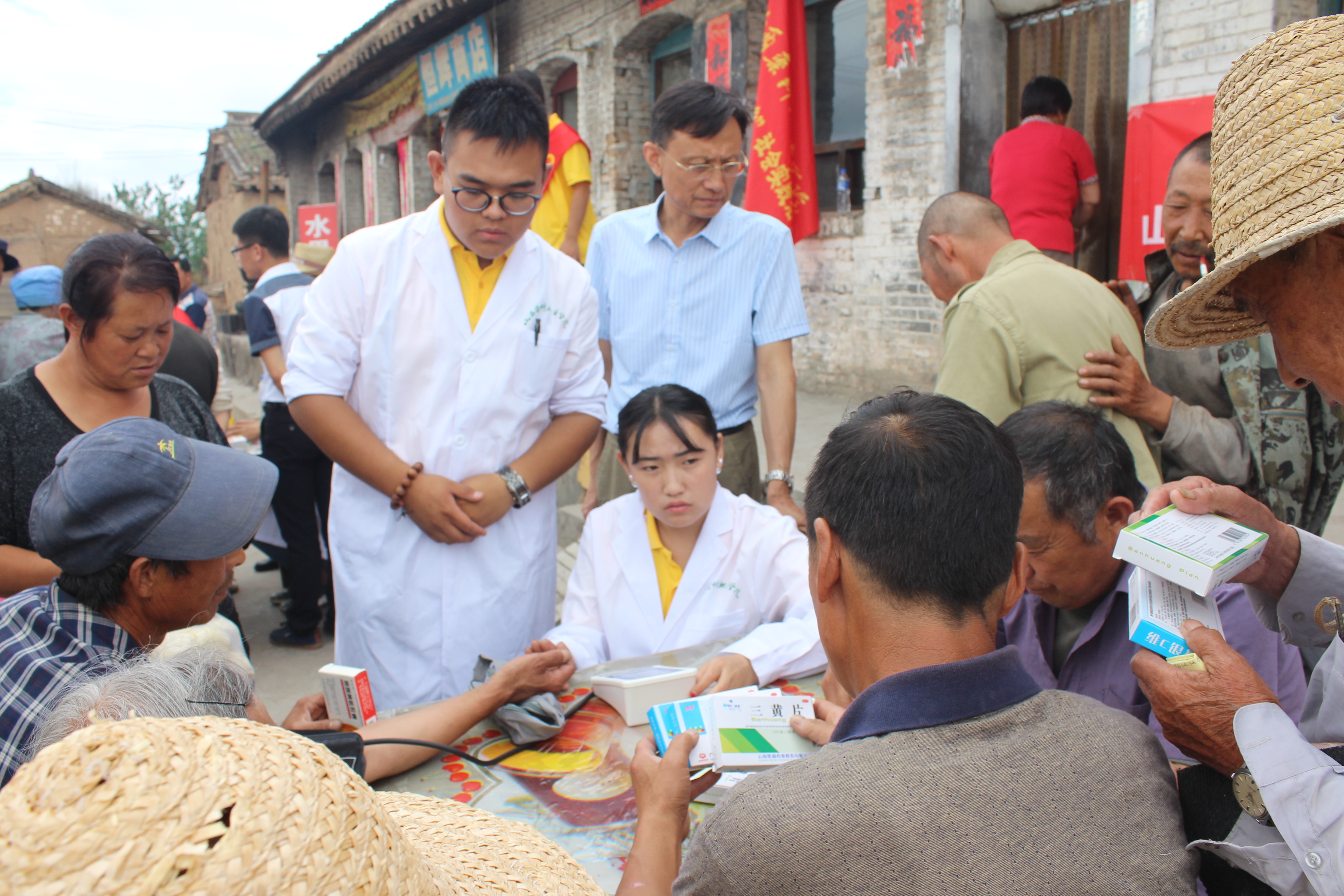7月9日下午,赴岢岚县三井镇社会实践团一行在三井村村支书的带领下,来到三井村开展医药卫生志愿服务。活动现场,实践队员们为当地居民义务量血压、发放常用OTC药品、宣传用药和食品安全等常识,在当地居民中反响热烈。