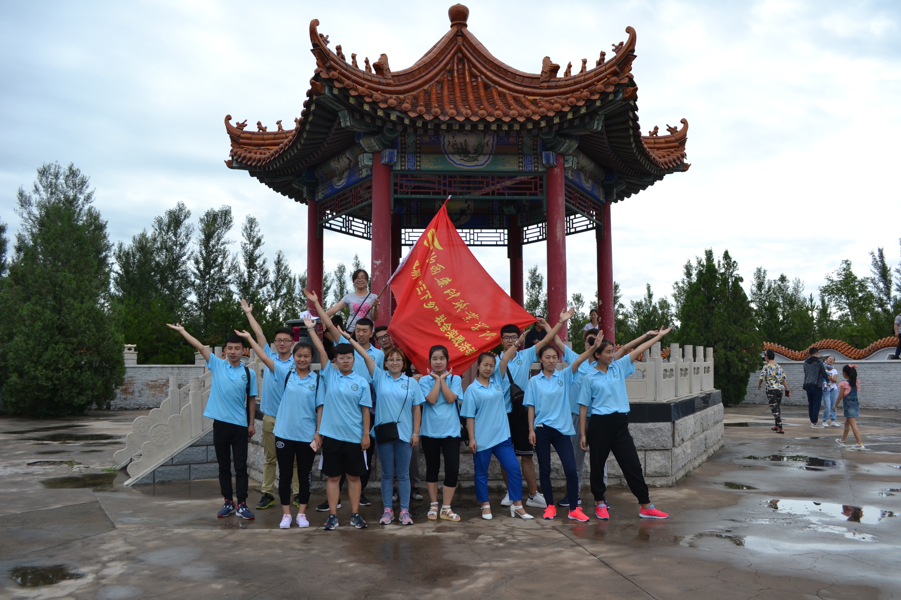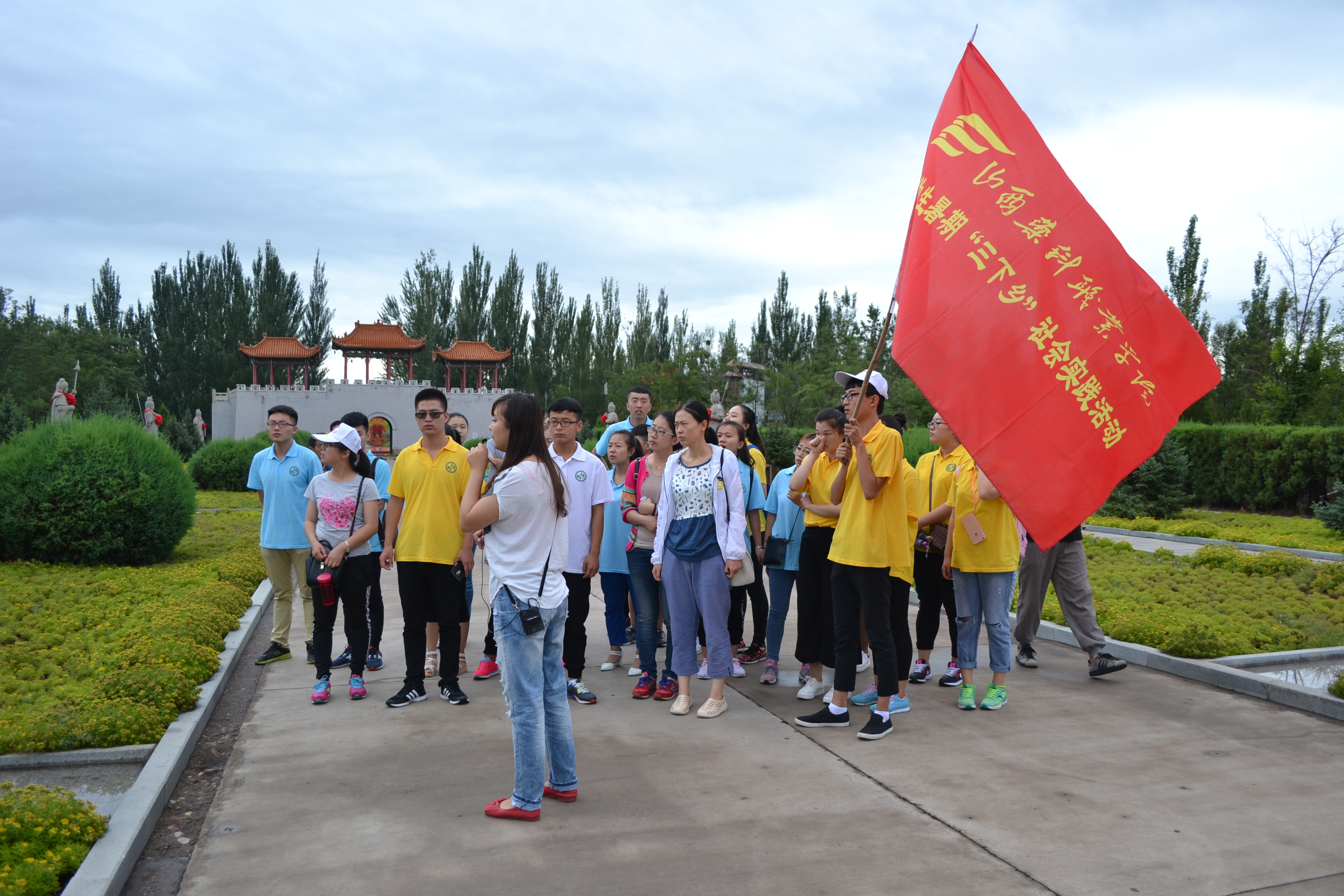为增强实践队员的爱国主义理想信念,弘扬中国精神,7月12日,赴怀仁县新家园乡社会实践团在新家园乡王乡长的带领下,来到怀仁金沙滩爱国主义教育基地。