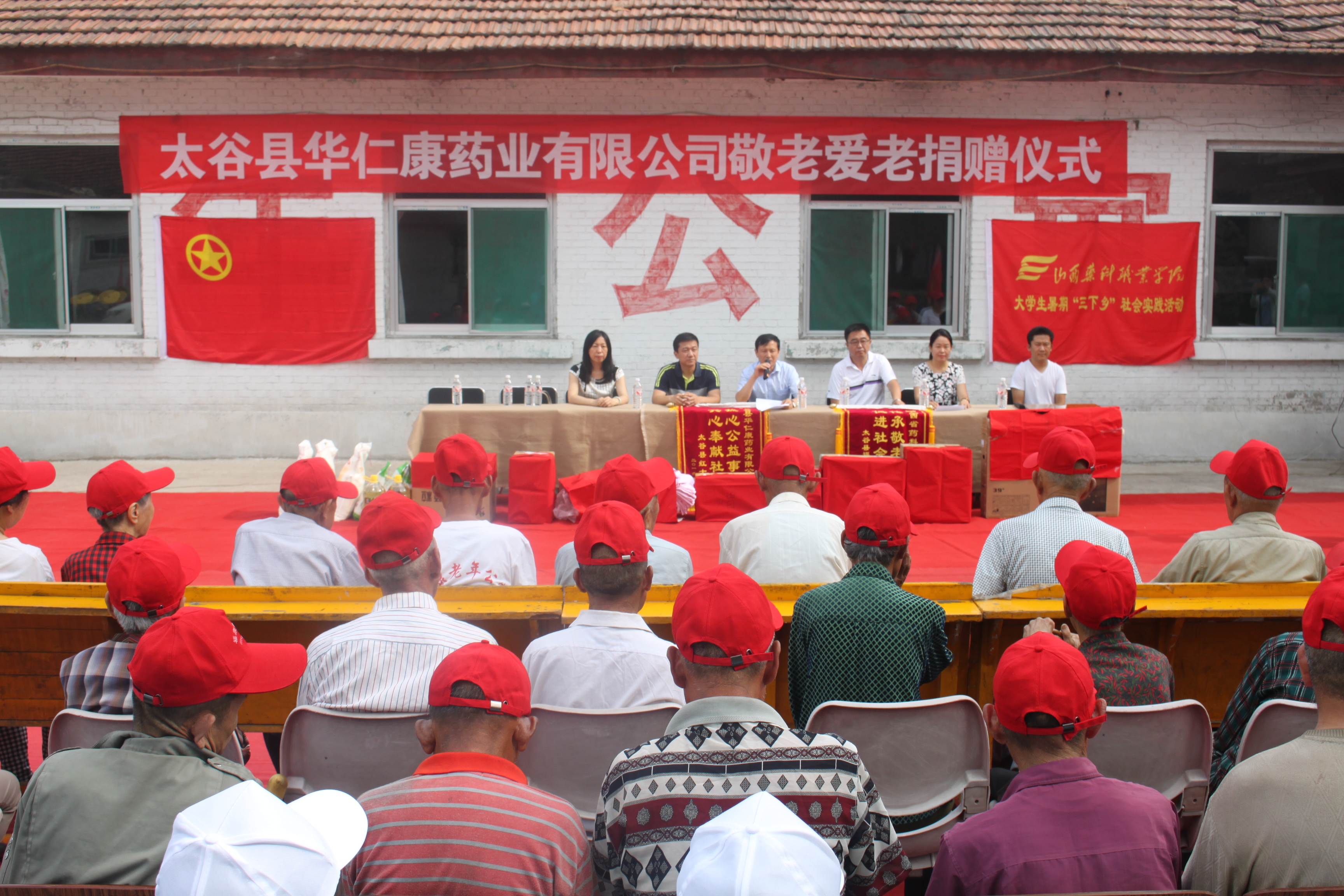 老吾老以及人之老,幼吾幼以及人之幼。为弘扬中华民族敬老爱老的传统美德,培养广大学生的孝亲情怀,7月13日上午,赴太谷社会实践团走进太谷县福康老年公寓与太谷县华仁康药业有限公司一起为老人们送去爱心、送去温暖。