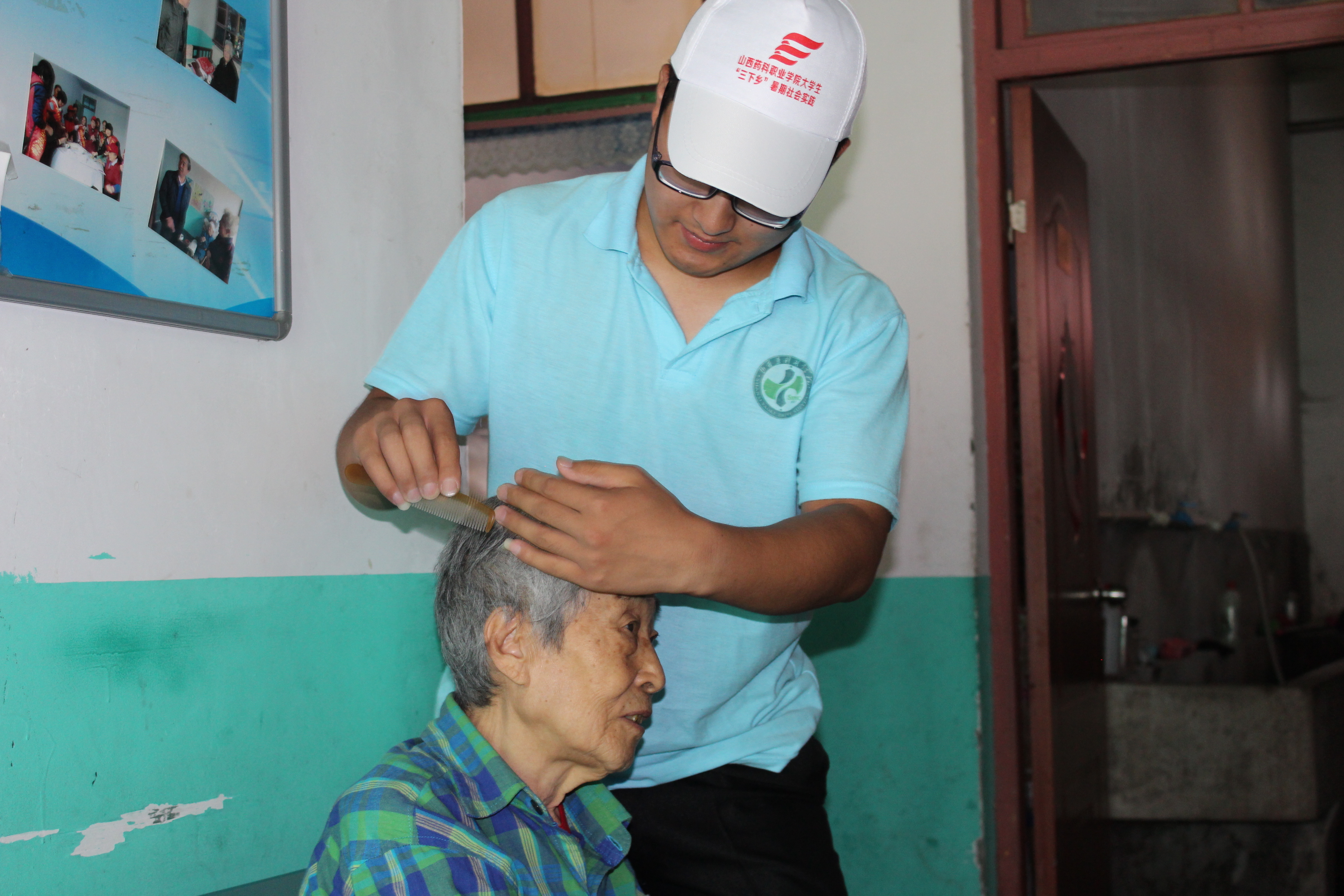 随后,社会实践队员们走进老人与他们亲切交谈,同时帮助他们做力所能及的事情。有的为他们表演精彩的文艺节目,有的为他们按摩、剪指甲、梳头发、洗脚,有的扶着行动不便的老人出门散步,还有的讲述校园里的故事等等。在交谈中,大家发现每一位老人身上都有很多故事,有的老人当过兵,还有的上过大学,他们的经历深深感染着每一位队员。看到老人们的脸上洋溢着幸福的微笑,队员们也感到快乐,这是真诚的尊老爱老之乐。