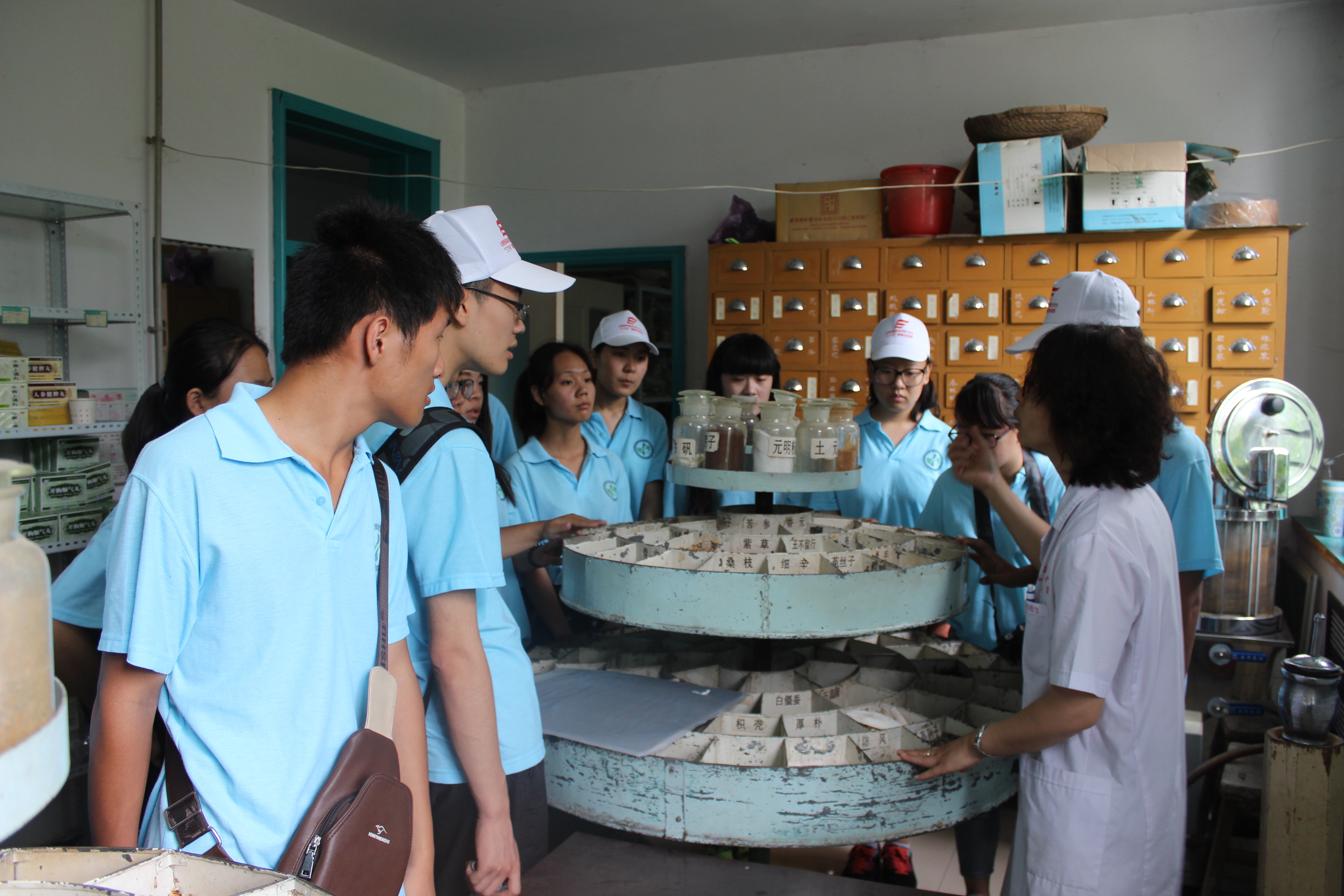 到达医院,院办主任带领队员们首先参观学习了彩超、胸透等医疗设备的使用。专业医生动手操控仪器设备,完整的为同学们展示操控流程,耐心地为同学们讲解设备原理、使用步骤,解答同学们的疑问。随后,队员们进入中药房和西药房。在中药房内,同学们围在药柜周围,讨论药柜中摆放的各种药材,队员们对中药材的认知鉴别程度,得到了医务人员的认可;在西药房内,医务人员为队员们讲解房内药品的摆放顺序及包装盒上不同商标所代表的不同含义,队员利用自己所学专业知识,与医务人员进行了交流互动。